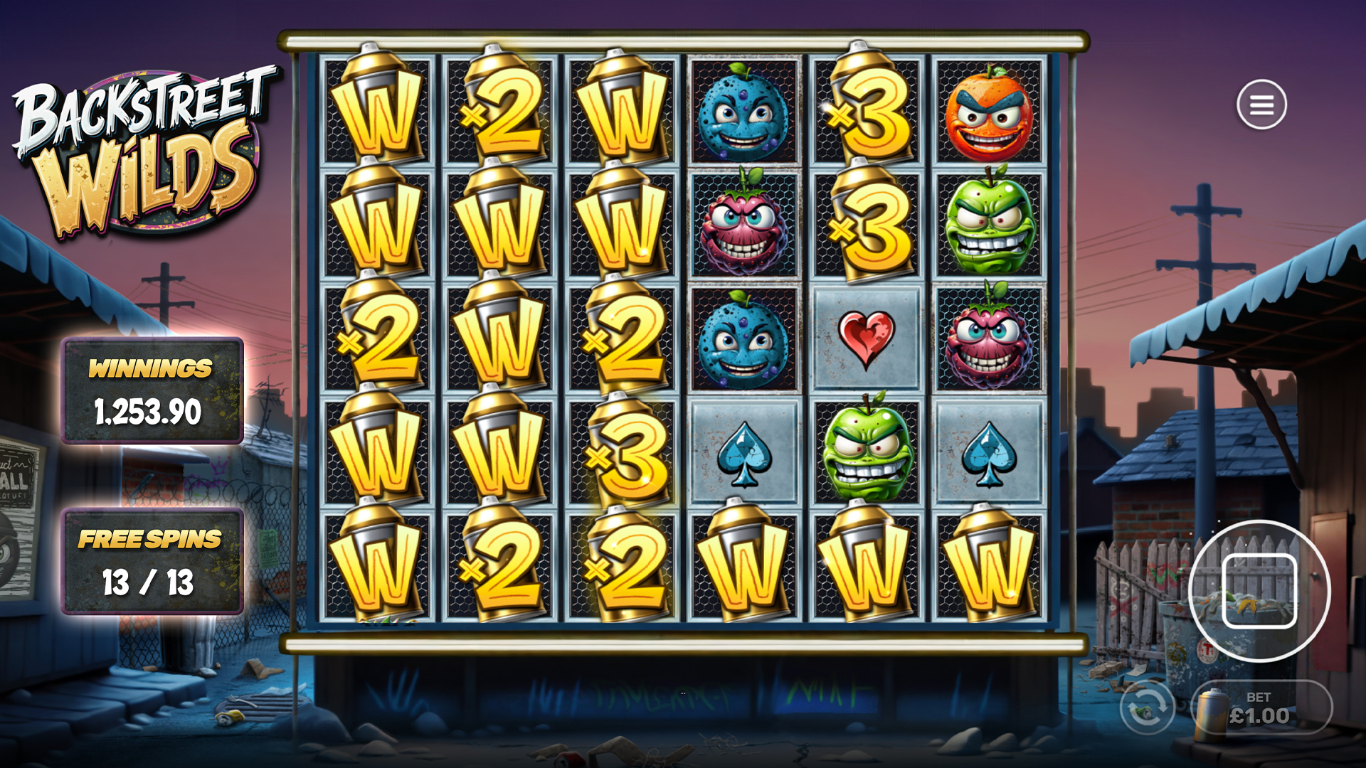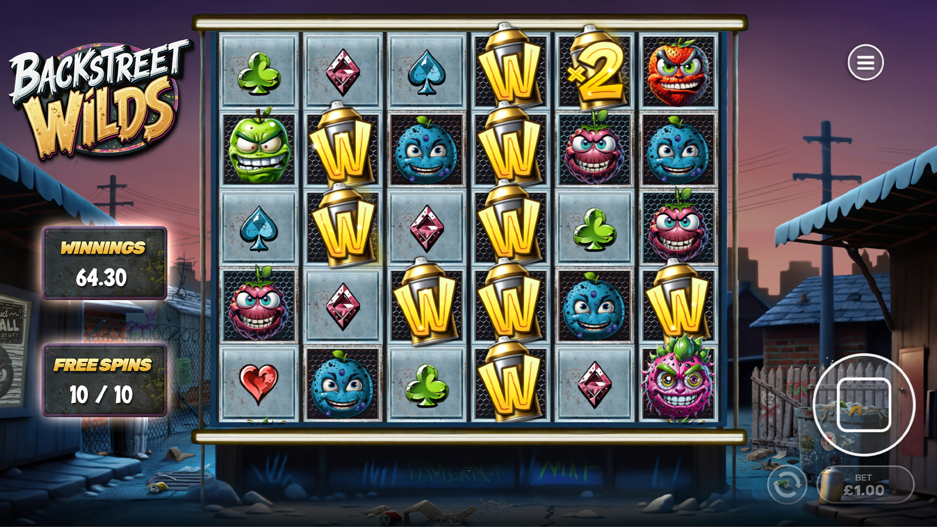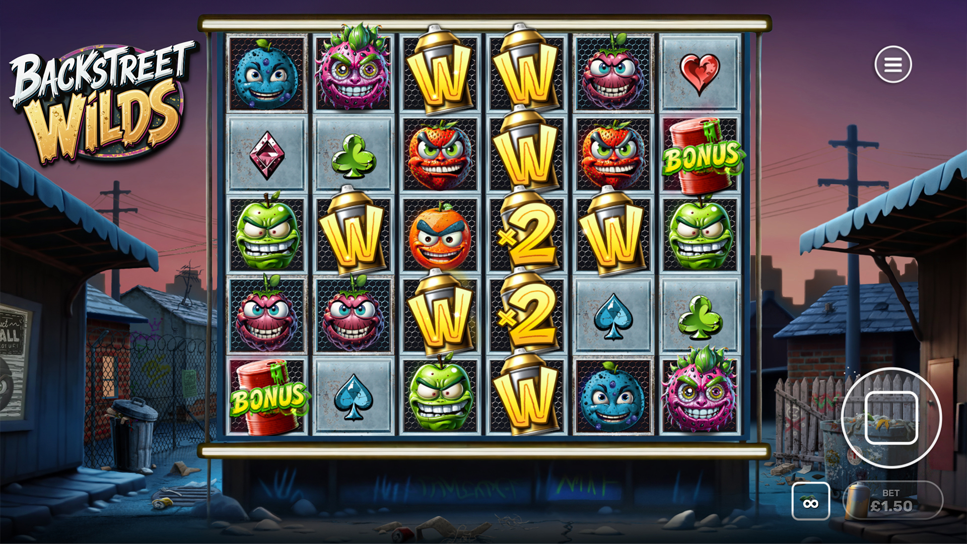 Backstreet Wilds slot by DreamSpin blends the gritty vibe of urban streets, graffiti, and spray paint with the timeless charm of fruits, monsters, and card suits, creating a wild mix of chaos and colour on every spin… Every spin feels like a late-night adventure.