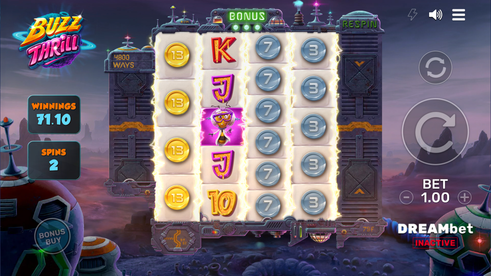 DreamSpin has started with a bang. The Buzz Thrill slot cleverly puts a twist on the popular outer space theme but placing a crew of heroic bees each with their unique characteristics. Quirky and fun, the animations are superb and going into overdrive in the bonus features.